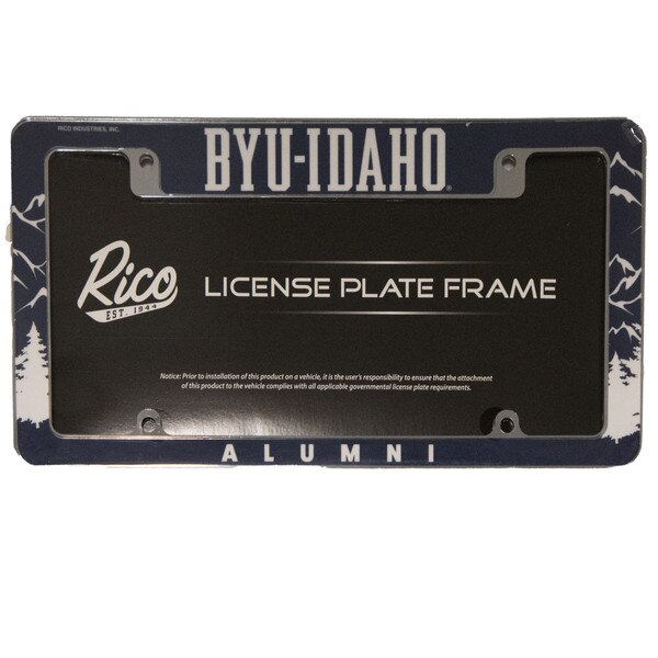 License Frame BYU-Idaho Alumni Chrome Mountain and Tree SKU License Frame BYU-Idaho Alumni Chrome Mountain and Tree $19.99 Quantity discounts available QuantityPrice (0) No Reviews yet Quantity -+ Add to Cart Details Metal license plate frame.Navy blue, white and silverManufactured by RicoMade in USA DetailsBackDetailsMetal license plate frame.Navy blue, white and silverManufactured by RicoMade in USA Ratings & ReviewsNo reviews availableBe the first to Write a Review