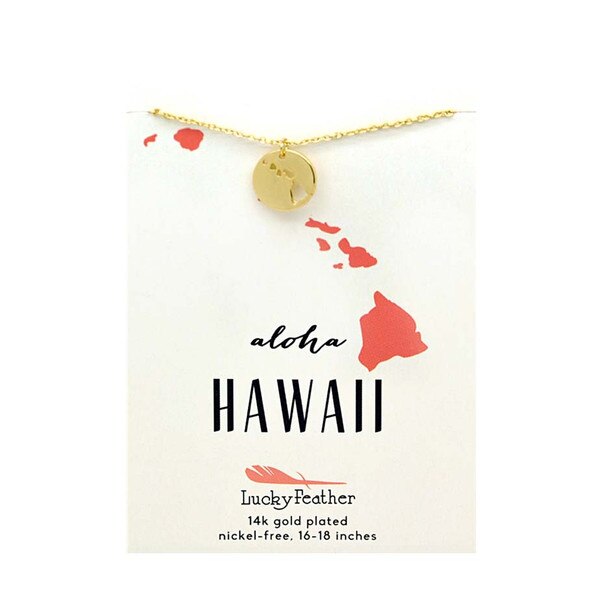 Aloha, Hawaii. Wear your pride with this 14k gold dipped Hawaii state necklace. Easily adjustable from 16-18" in length and packaged on a stylish and colorful card with the state silhouette. Now you can live, love and aloha in style!
