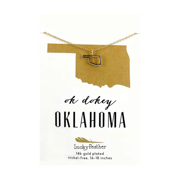 Ok Dokey, Oklahoma. Wear your pride with this 14k gold dipped Oklahoma state necklace. Easily adjustable from 16-18" in length and packaged on a stylish and colorful card with the state silhouette. Now you can enjoy Oklahoma in style!