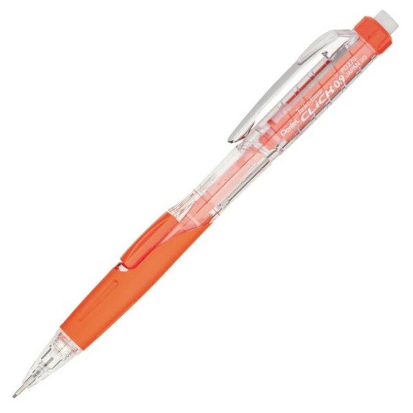 Pencil Mechanical Pentel Twist Erase Click .9 Orange SKU Pencil Mechanical Pentel Twist Erase Click .9 Orange $2.49 Quantity discounts available QuantityPrice (0) No Reviews yet Quantity -+ Add to Cart Details Manufactured by Pentel.Mechanical pencil with a twistable eraser.Side clicking lead for ease when writing.Bold 0.9MM lead.Orange color.Made in Mexico. DetailsBackDetailsManufactured by Pentel.Mechanical pencil with a twistable eraser.Side clicking lead for ease when writing.Bold 0.9MM lead.Orange color.Made in Mexico. Ratings & ReviewsNo reviews availableBe the first to Write a Review