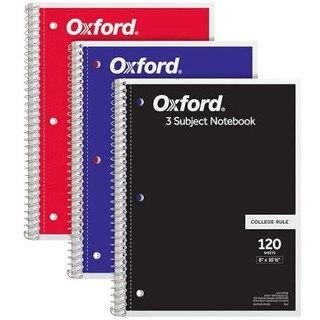 Notebook 3 Subject College Margin 11X8.5 120Ct Assorted Perf