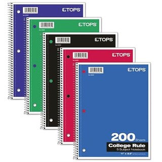 Notebook 5 Subject College Margin 11X8.5 200Ct Assorted Perf